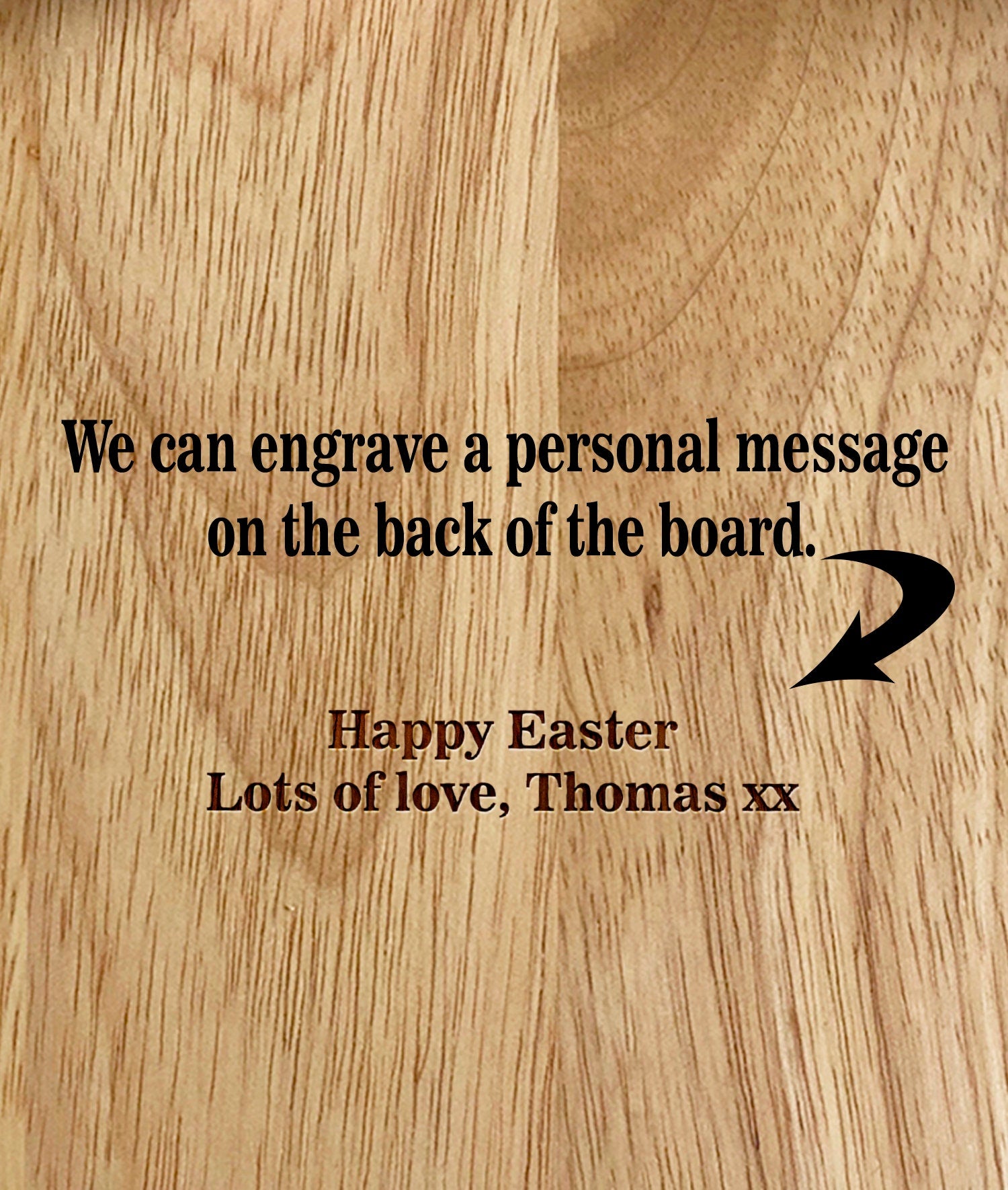 This solid wood toast shaped board is engraved with a the name you provide..